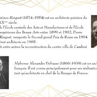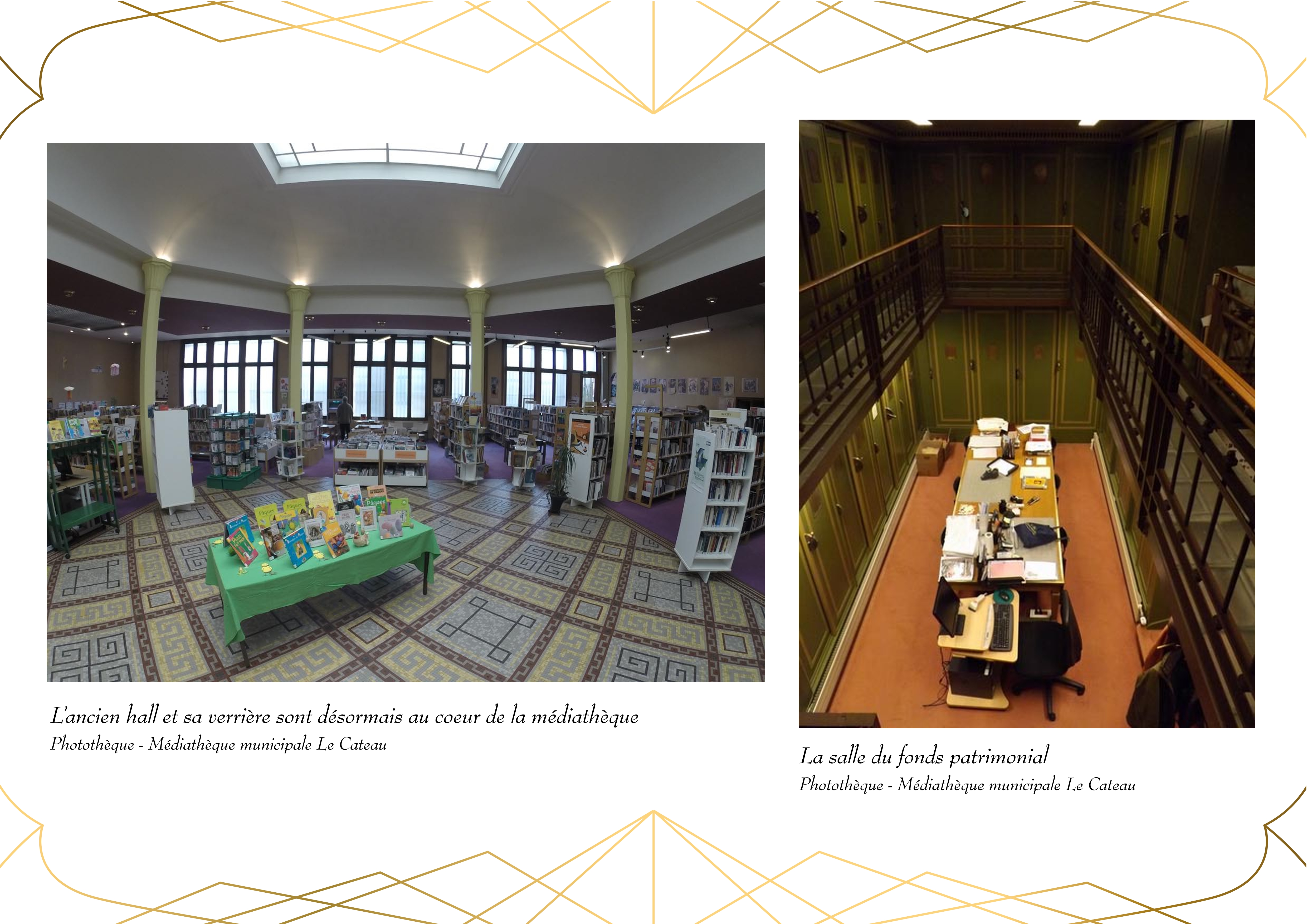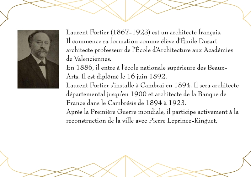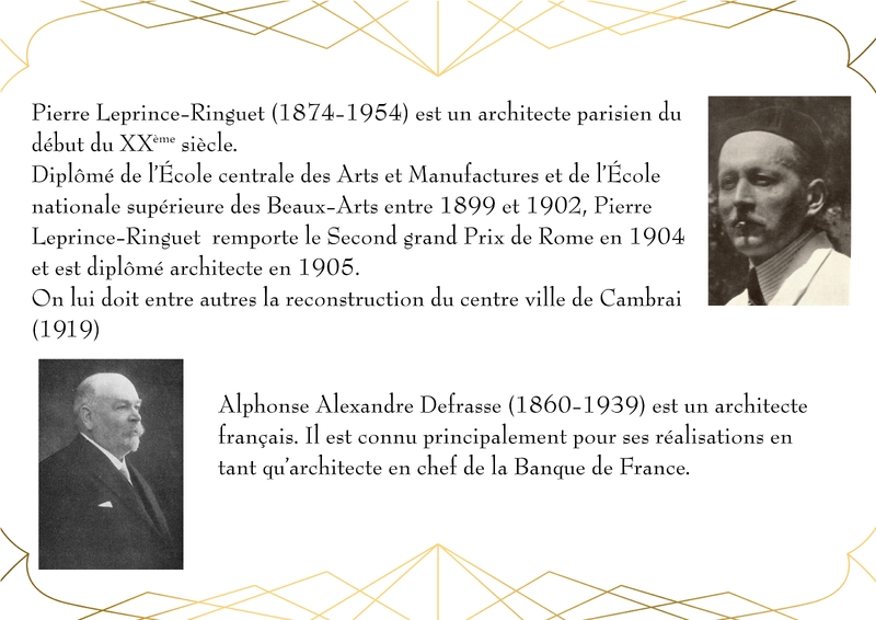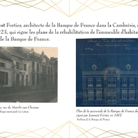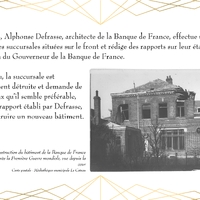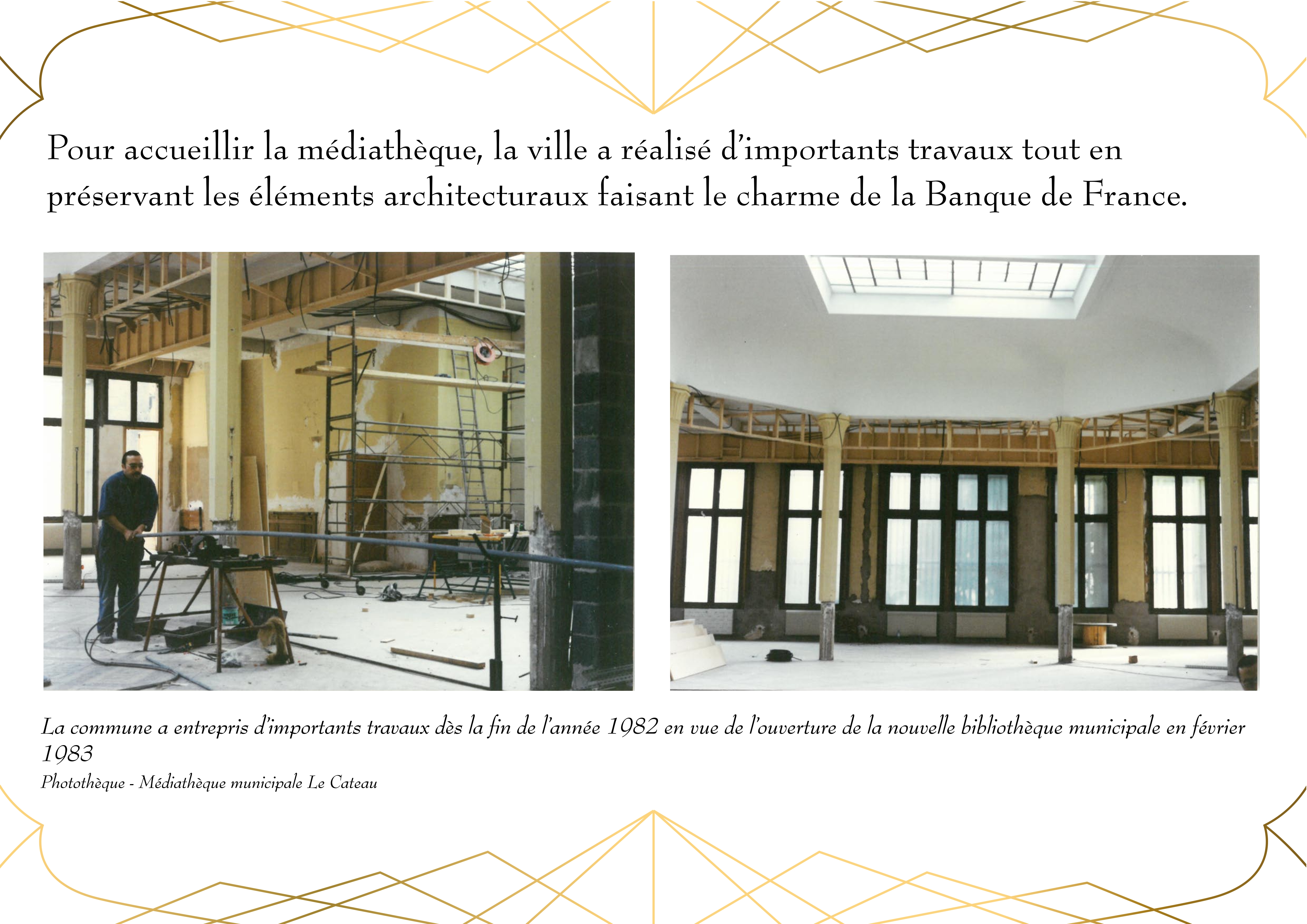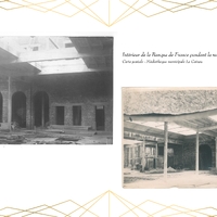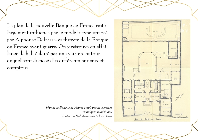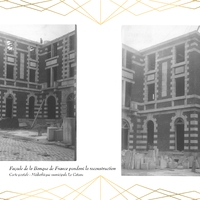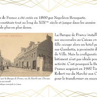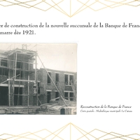 Entièrement détruit lors de la libéraion de la ville en 1918, Le bâtiment de la Banque de France, qui abrite actuellement la Médiathèque du Cateau, est rénové en 1920.