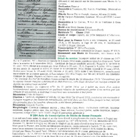Fiche de combattant mort pour la France dans le catésis durant la Première Guerre mondiale