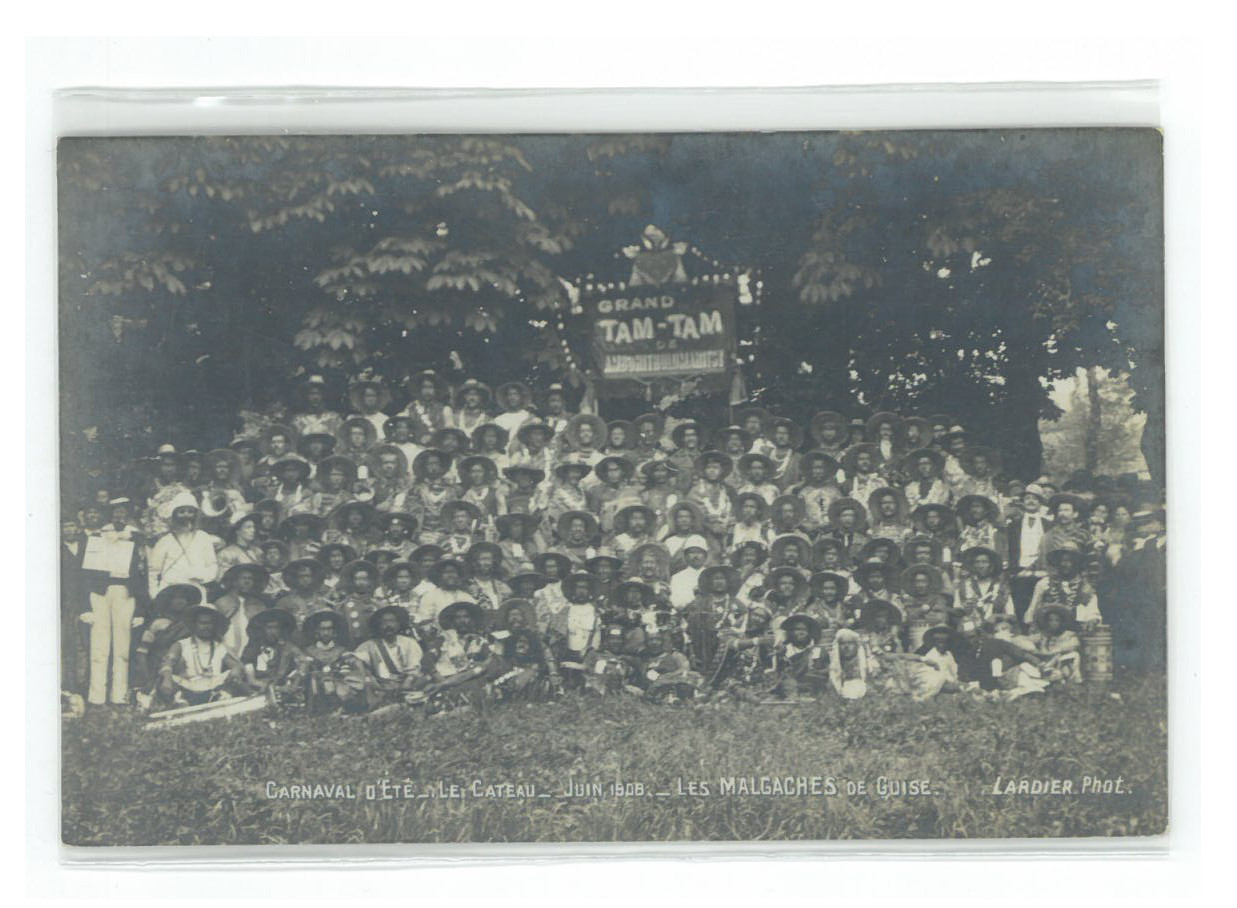 Troupe déguisée pour Carnaval d'été du Cateau en 1908, "les Malgaches de Guise"
