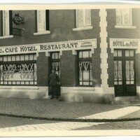 Soldat allemand posant devant Hôtel du Midi durant l'Occupation de la Seconde Guerre mondiale