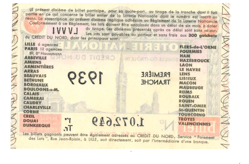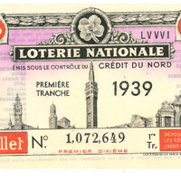 Billet de la loterie nationale datant de 1939
