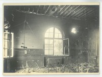 L' intérieur de la chapelle de l’Hôpital Paturle endommagé lors de la libération 1918.Créateur : Photographies Touly,4, Cité Magenta, Paris XeDate : 1918/1919Type : Image, Image fixe, PhotographieMots‑clés : Destructions, Première Guerre mondiale, Dommages de guerre : 1918, photographies Touly, Carte postale allemande