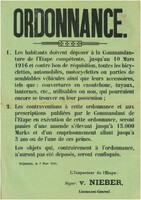 Ordre écrit au dos d'un papier à entête des Établissements Degrémonts quelques semaines avant la libération de la ville.Créateur : Deutsches HeerDate : 1918-09-8Type : Text, ManuscritMots‑clés : Commerces, Occupation, Première Guerre mondiale, Carte postale allemande -