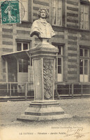 La statue, devant être réquisitionnée pour être fondue, a été sauvée par M.Legrand, chaudronnier local, qui l'a cachée dans un tas de charbon durant l'occupation.Type : Image, Image fixe, PhotographieMots‑clés : Maréchal Mortier, Occupation, Seconde Guerre mondiale, Carte postale allemande -